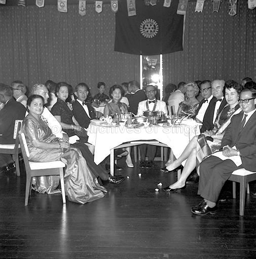 A DINNER WAS HELD AT CATHAY RESTAURANT FOR THE INSTALLATION OF NEW PRESIDENT OF THE SINGAPORE ROTARY CLUB. (WEE CHONG JIN (4L), TOH CHIN CHYE (L))