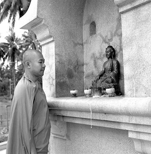 BUDDHIST MONK AT THE ST MICHAEL'S ROAD BUDDHIST TEMPLE, SINGAPORE.