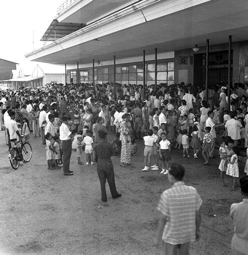 CROWD WAITING AT ANTI-POLIO REGISTRATION AND VACCINATION CENTRE IN SINGAPORE YOUTH SPORTS CENTRE