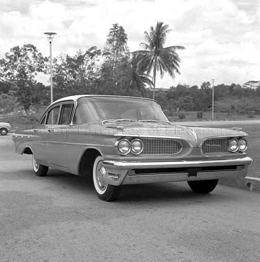 [A 1959 PONTIAC LAURENTIAN FOUR-DOOR SEDAN. FROM BEHIND THE WHEEL OF THIS CAR - LONGER, LOWER AND WIDER - THE VIEW FOR'ARD IS NEARLY LIKE ONE FROM THE BRIDGE OF A SHIP.] THE PONTIAC LAURENTIAN.