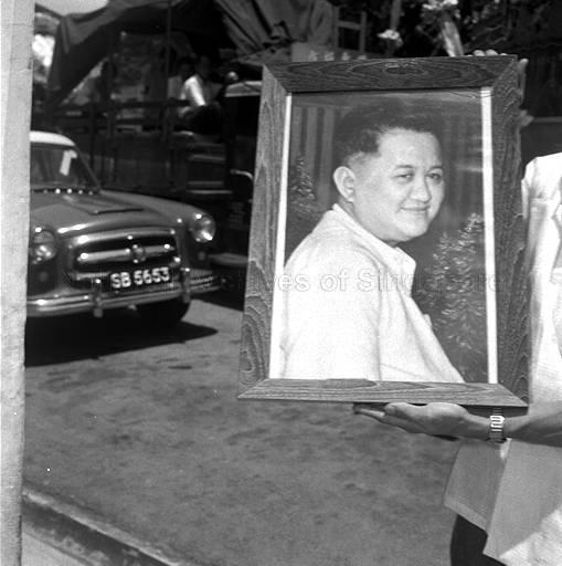 FUNERAL OF KIDNAPPED VICTIM "BISCUIT KING" MR LEE GEE CHONG, 49, AT THE GENERAL HOSPITAL MORTUARY. MR LEE GEE CHONG'S BODY, WRAPPED IN A BLANKET, WAS FOUND AMIDST TOMBSTONES OVERGROWN WITH LALLANG IN A GRAVEYARD AT PLANTATION AVENUE, OFF YIO CHU KANG ROAD WITH SEVERE INJURIES TO HIS HEAD. MR. LEE, CHAIRMAN OF THE THYE HONG BISCUIT FACTORY, WAS ABDUCTED IN GARLICK AVENUE NEAR HIS RESIDENCE ON WEDNESDAY NIGHT.