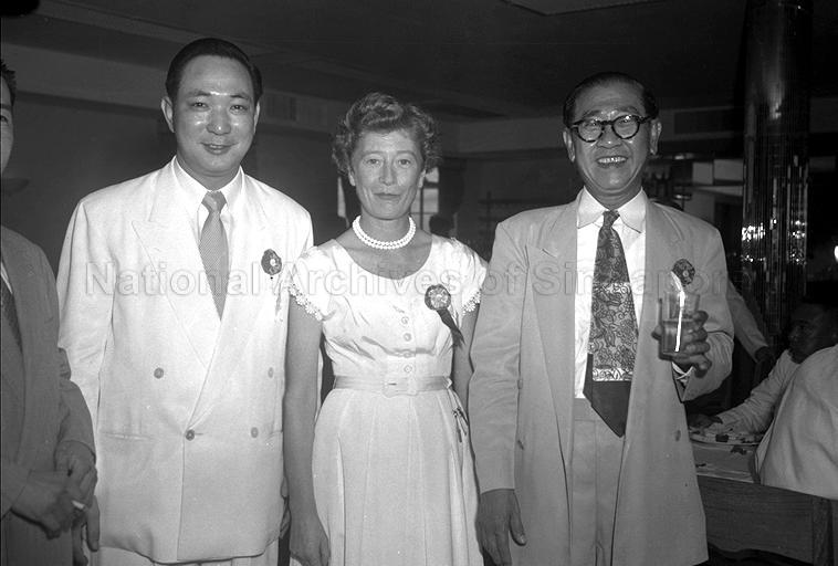 (FROM RIGHT) MR WEE THIAM SIEW, OWNER OF THE SEVEN-STOREY HOTEL, WITH MISS MCARDLE AND GENERAL MANAGER MR HEE CHIT LIN AT COCKTAIL PARTY TO CELEBRATE THE HOTEL'S OPENING