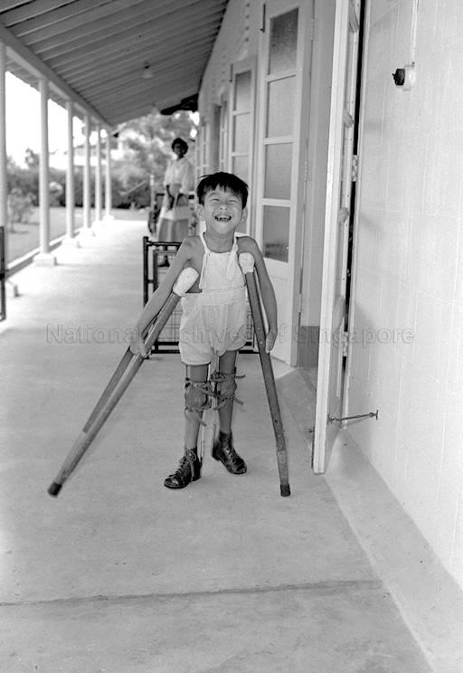 SIR ROBERT BLACK, GOVERNOR OF SINGAPORE, MADE HIS FIRST VISIT TO THE CRIPPLED CHILDREN'S HOME AT TANAH MERAH. HE TOURED THE HOME FOR MORE THAN AN HOUR AND SPOKE TO EACH AND EVERY ONE OF THE 40 LITTLE INMATES.