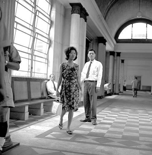 (X) [IRENE TOH, (LEFT), HALF-SISTER OF JENNY CHEOK IS TESTIFYING AT THE SUNNY ANG MURDER TRIAL IN THE HIGH COURT. SUNNY ANG 27, ALSO KNOWN AS ANG SOO SUAN AND ANTHONY ANG, A FORMER SINGAPORE GRAND PRIX DRIVER IS CHARGED WITH THE MURDER OF CHEOK CHENG KID, 22, A ONE-TIME BAR GIRL AT SEA OFF PULAU DUA (SISTERS ISLANDS) AT 5 P.M. ON AUG. 27, 1963.] IRENE TOH ... TELLS OF CLOSE FRIENDSHIP.