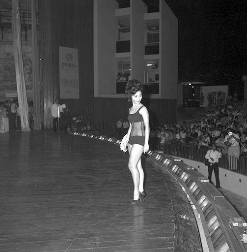 CHECKED (X) A FINALIST POSING AT THE "MISS SINGAPORE 1965" CONTEST AT THE NATIONAL THEATRE