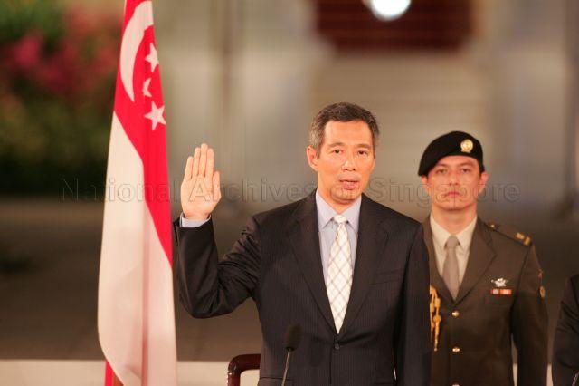 SWEARING-IN CEREMONY OF PRIME MINISTER (PM) LEE HSIEN LOONG AND THE NEW CABINET AT THE ISTANA - PICTURE SHOWS PM LEE HSIEN LOONG TAKING OATH FOR DUE EXECUTION OF OFFICE OF PM AND OATH OF ALLEGIANCE