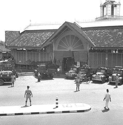YF - [TWO LORRY ATTENDANTS, TAN BIN SENG, 20 AND LOO HAI YIP, 22, WERE GAMBLING IN A STATIONARY LORRY WITH SIX OTHER YOUTHS WHEN THEY WERE STABBED TO DEATH OUTSIDE OLD MARKET IN ROBINSON ROAD IN THE MOST DARING GANG ATTACK IN RECENT YEARS. TAN AND LOO WERE MEMBERS OF THE 24 SECRET SOCIETY GROUP. THEY WERE ATTACKED BY SEVEN OR EIGHT THUGS FROM THE RIVAL 08 GROUP.] SCENE OF THE GANG ATTACK.