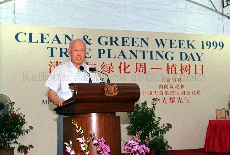 SENIOR MINISTER LEE KUAN YEW SPEAKING AT BLOCK. 89, REDHILL CLOSE DURING TREE PLANTING DAY