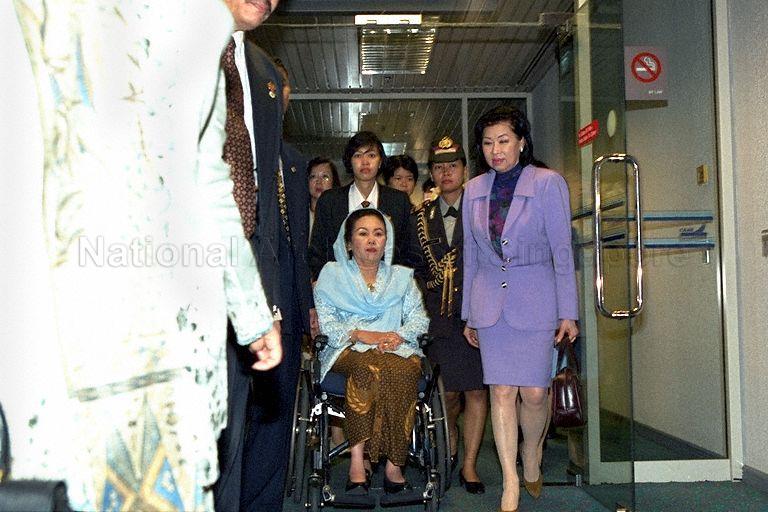 THE VISIT OF THE PRESIDENT OF THE REPUBLIC OF INDONESIA HE ABDURRAHMAN WAHID AT THE VIP COMPLEX TERMINAL 2, CHANGI AIRPORT PICTURE SHOWS MRS GOH CHOK TONG, THE WIFE OF THE PRIME MINISTER OF SINGAPORE WITH THE FIRST LADY OF THE REPUBLIC OF INDONESIA SHINTA NURIYAH AT THE CHANGI AIRPORT