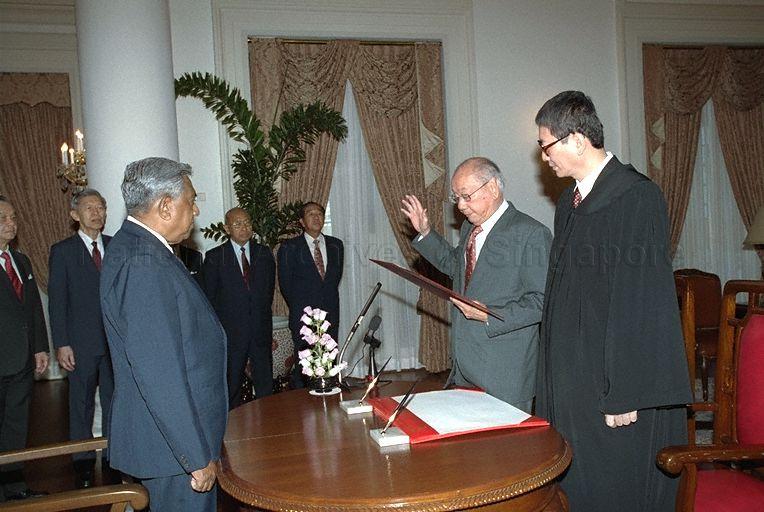 PRESIDENT S R NATHAN PRESIDES OVER THE SWEARING-IN CEREMONY OF THE CHAIMAN OF THE COUNCIL OF PRESIDENTIAL ADVISORS (CPA) AT THE WEST DRAWING ROOM, ISTANA