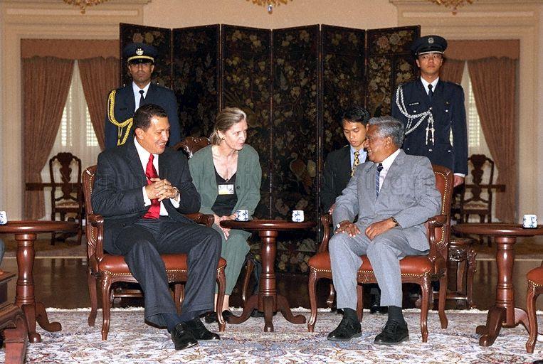 PRESIDENT OF THE REPUBLIC OF VENEZUELA HUGO CHAVEZ FRIAS CALLS ON PRESIDENT S R NATHAN AT THE ISTANA