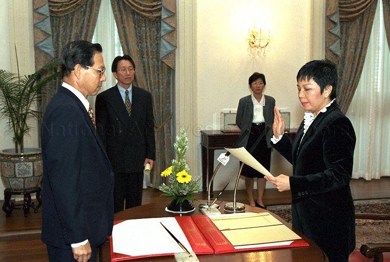 PRESIDENT ONG TENG CHEONG OFFICIATING AT THE SWEARING-IN-CEREMONY FOR MRS YU FOO YEE SHOON AS SENIOR PARLIAMENTARY SECRETARY AT THE EAST DRAWING ROOM, ISTANA