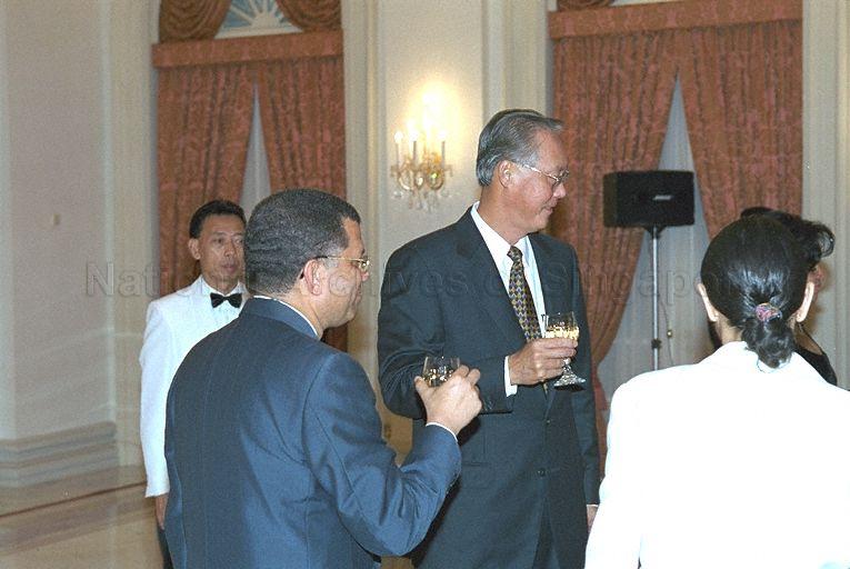 THE PRIME MINISTER OF THE REPUBLIC OF CAPE VERDE, HE CARLOS ALBERTO WAHNON DE CARVALHO VEIGA & MADAM MARIA EPIFANIA ALMEIDA ATTEND DINNER HOSTED BY PRIME MINISTER GOH CHOK TONG & MRS GOH CHOK TONG AT THE ISTANA