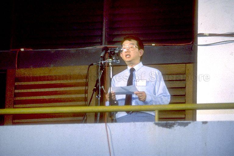 ANNOUNCEMENT OF ELECTION RESULTS AT SINGAPORE 1988 GENERAL ELECTION COUNTING CENTRE IN ANDERSON JUNIOR COLLEGE