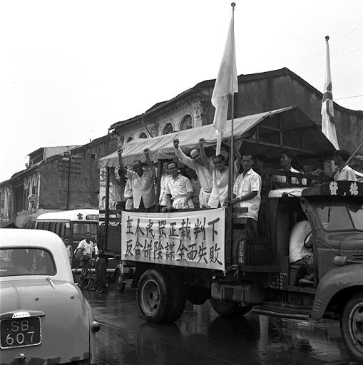 THE PEOPLE'S ACTION PARTY (PAP) MINISTERS AND MEMBERS THANKING VOTERS FOR THEIR SUPPORT IN THE NATIONAL REFERENDUM ON MERGER FROM A LORRY