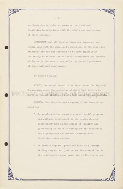 THE ASEAN DECLARATION - SIGNED IN BANGKOK ON 08 AUG 1967 (PAGE 2 OF 5)