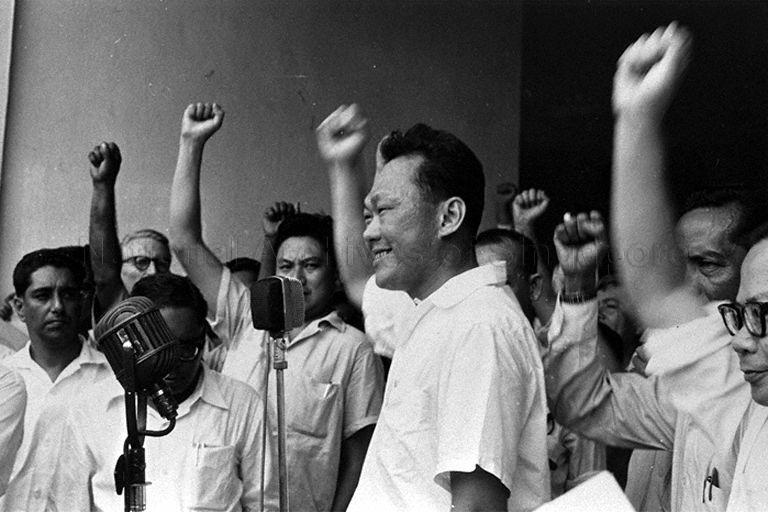 PEOPLE'S ACTION PARTY (PAP) SECRETARY-GENERAL LEE KUAN YEW AT A RALLY
