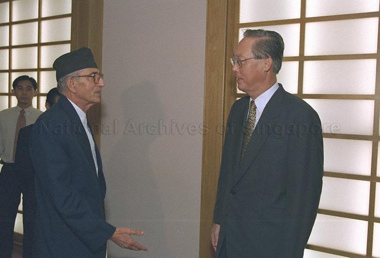NEPAL PRIME MINISTER GIRIJA PRASAD KOIRALA CALLS ON PRIME MINISTER GOH CHOK TONG AT THE ISTANA