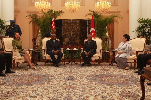 GABON PRESIDENT ALI BONGO ONDIMBA AND SPOUSE CALLING ON PRESIDENT AND MRS NATHAN AT ISTANA