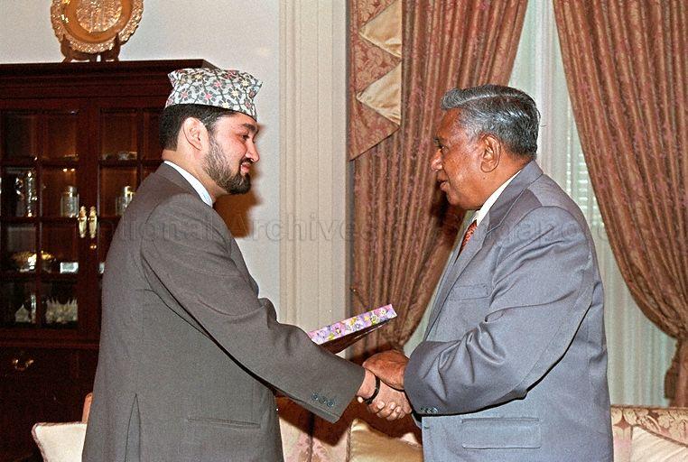 CROWN PRINCE OF NEPAL DIPENDRA BIR BIKRAM SHAH DEV CALLS ON PRESIDENT S R NATHAN AT THE ISTANA
