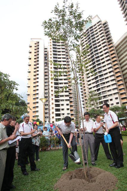 MINISTER MENTOR LEE KUAN YEW ATTENDING THE TANJONG PAGAR GRC TREE PLANTING DAY 2010 AT BLK 27A, JALAN MEMBINA