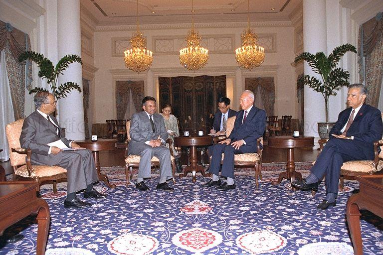 SENIOR MINISTER LEE KUAN YEW HOLDING A MEETING WITH CHIEF EXECUTIVE OF THE ISLAMIC REPUBLIC OF PAKISTAN, GENERAL PERVEZ MUSHARRAF AT THE EAST DRAWING ROOM, ISTANA