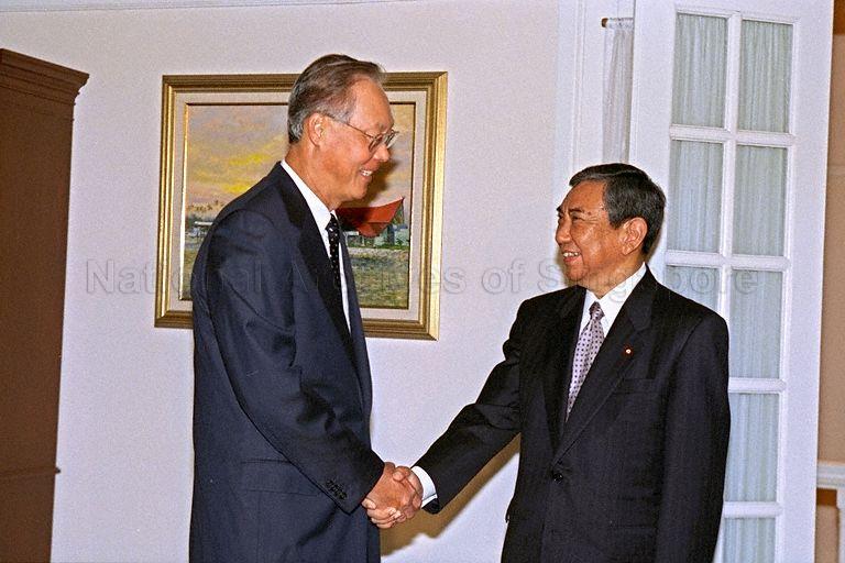 JAPANESE FOREIGN MINISTER YOHEI KONO CALLS ON PRIME MINISTER GOH CHOK TONG AT ISTANA VILLA