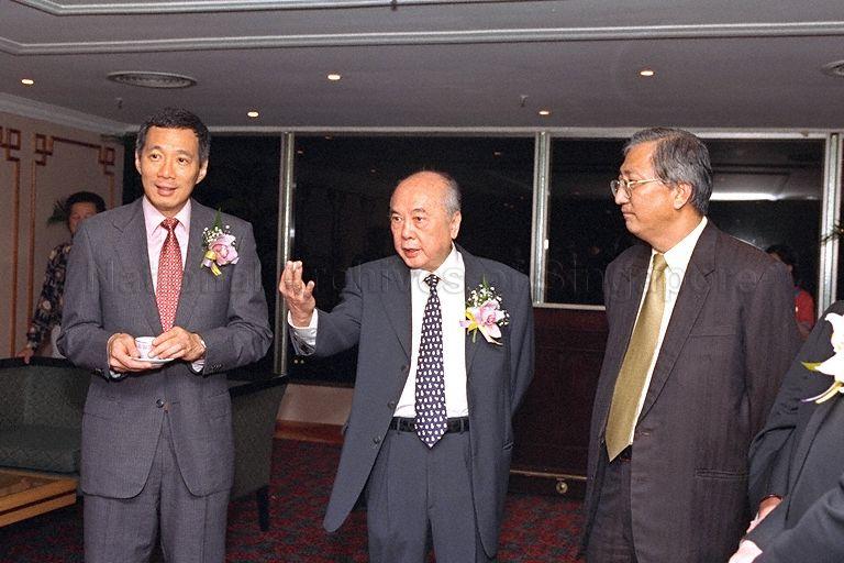 DEPUTY PRIME MINISTER BRIGADIER-GENERAL (NS) LEE HSIEN LOONG AND MR WEE CHO YAW, CHAIRMAN OF SINGAPORE FEDERATION OF CHINESE CLAN ASSOCIATIONS (SFCCA), AT 15TH ANNIVERSARY DINNER OF SFCCA AT NEPTUNE THEATRE RESTAURANT