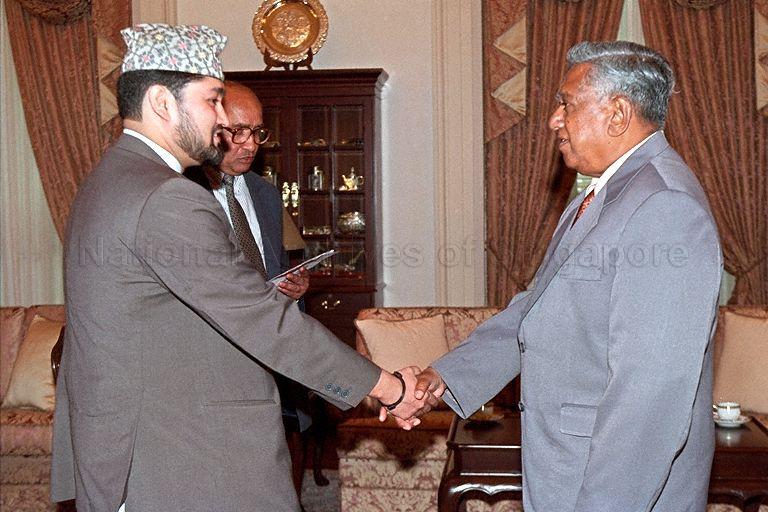 CROWN PRINCE OF NEPAL DIPENDRA BIR BIKRAM SHAH DEV CALLS ON PRESIDENT S R NATHAN AT THE ISTANA