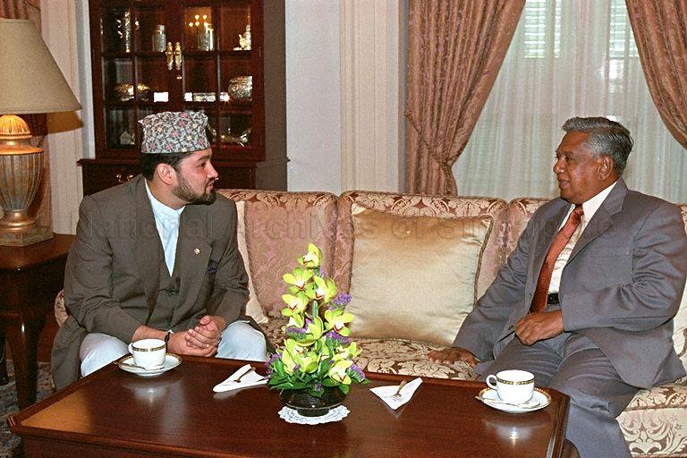 CROWN PRINCE OF NEPAL DIPENDRA BIR BIKRAM SHAH DEV CALLS ON PRESIDENT S R NATHAN AT THE ISTANA
