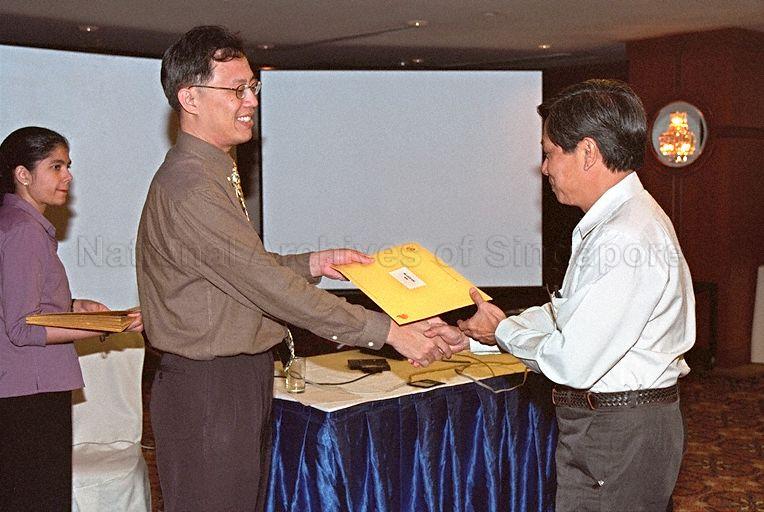 DEPUTY SECRETARY, MINISTRY OF INFORMATION & THE ARTS PRESENTS CERTIFICATES AT THE "INFORMATION MANAGEMENT IN CRISIS" AT THE HOLIDAY INN PARK VIEW, 11 CAVENAGH ROAD
