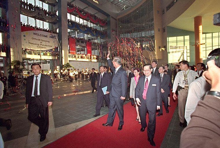 NANYANG POLYTECHNIC (NYP) PRINCIPAL AND CHIEF EXECUTIVE OFFICER LIN CHENG TON ACCOMPANYING PRIME MINISTER GOH CHOK TONG AND MRS GOH ON THEIR ARRIVAL FOR THE OFFICIAL OPENING OF THE NYP CAMPUS