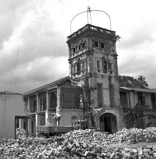 DEMOLITION OF HISTORICAL "BENDEMEER HOUSE" IN SERANGOON ROAD, WHICH BELONGED ORGINALLY TO A PROMINENT CHINESE WHAMPOA (HOO AH KAY) IN 19TH CENTURY SINGAPORE