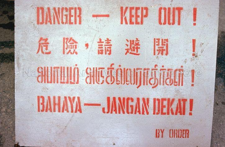 "DANGER KEEP OUT" SIGN IN FOUR LANGUAGES