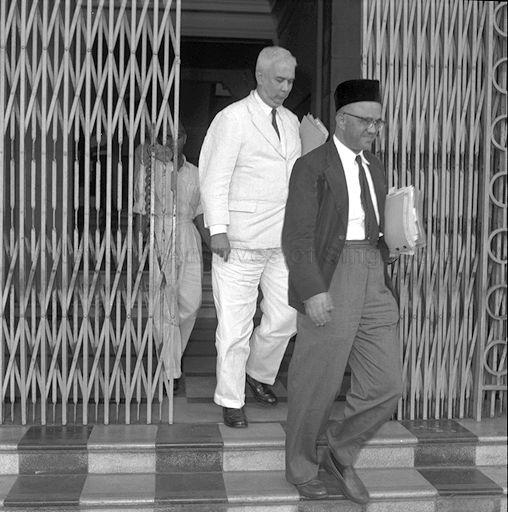 MINISTER FOR LABOUR AND LAW KENNETH MICHAEL BYRNE (LEFT) AND STATE ADVOCATE-GENERAL AHMAD BIN MOHAMED IBRAHIM AT HIGH COURT FOR COMMISSION OF INQUIRY ON MR ONG ENG GUAN'S ALLEGATIONS OF NEPOTISM AGAINST PRIME MINISTER AND MINISTER FOR LABOUR AND LAW