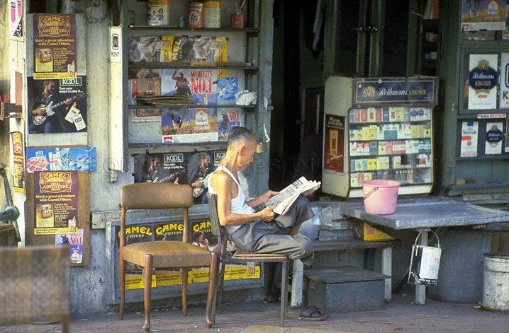 A SUNDRY SHOP OWNER IN JOO CHIAT READING THE NEWSPAPERS, 1985