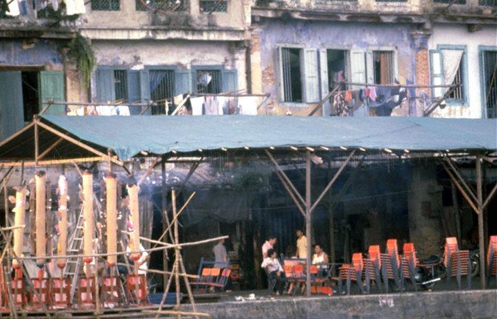 CHAIRS AND A TEMPORARY TENT SET UP AT CLARKE QUAY TO CELEBRATE THE HUNGRY GHOST FESTIVAL