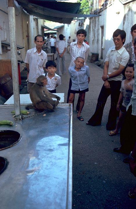 DESKER ROAD, A MONKEY ENTERTAINS A SMALL CROWD