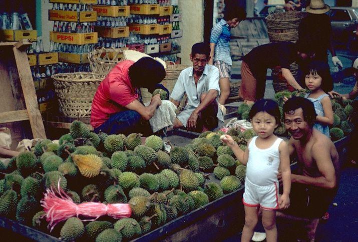 FAMILY AT DURIAN STALL AT JOHORE ROAD.