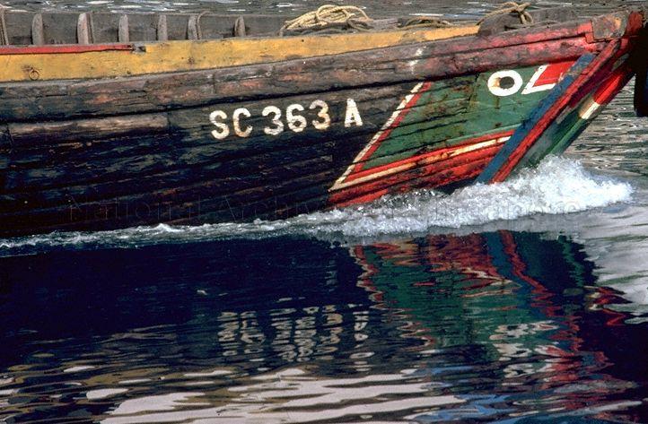 TWAKOW PROCEEDS DOWN SINGAPORE RIVER LEAVING REFLECTION IN THE WATER, GREEN COLOUR ROUND THE "EYE" INDICATES HOKKIEN OWNERSHIP