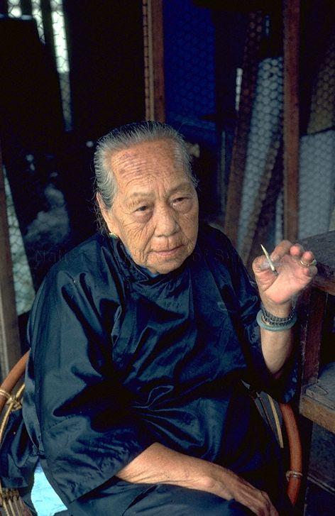 SAM FOO DRESSED OLD LADY SMOKES A HAND ROLLED CIGARETTE