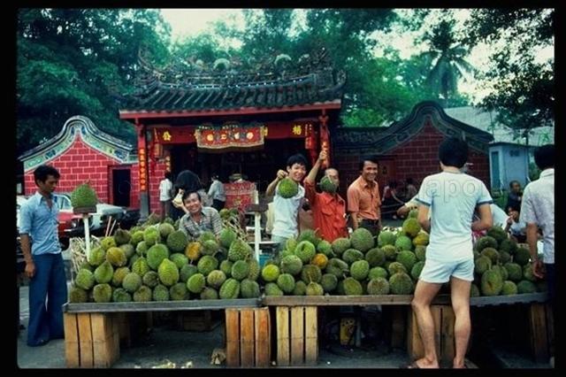 DURIAN STALL IN FRONT OF THE TAU PEH KONG TEMPLE AT BALESTIER ROAD