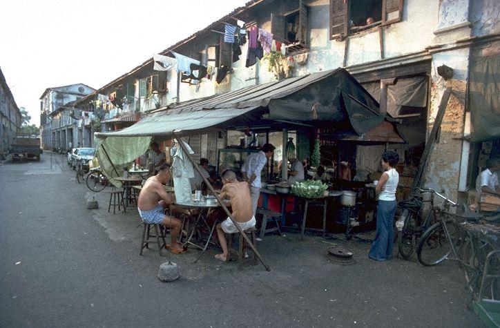 COFFEE STALL AT KENG CHEOW ROAD WITH VIEW OF SHOP HOUSES AT CUMMING STREET