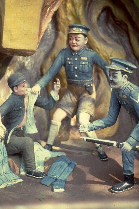 TIGER BALM GARDENS. STATUES OF POLICE MAKING ARREST, MOST LIKELY OF ACCIDENT SCENE DRUNKEN DRIVER