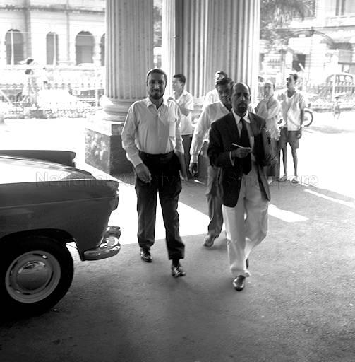 LAWYER T T RAJAH ARRIVING AT THE FIRST CRIMINAL DISTRICT COURT WITH SINGAPORE HARBOUR BOARD STAFF ASSOCIATION (SHBSA) GENERA SECRETARY JAMIT SINGH (LEFT) FOR ALLEGED MISUSE OF UNION FUNDS
