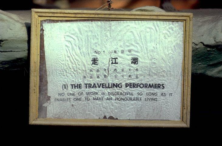 TIGER BALM GARDENS. PLAQUE ON TRAVELLING PERFORMERS
