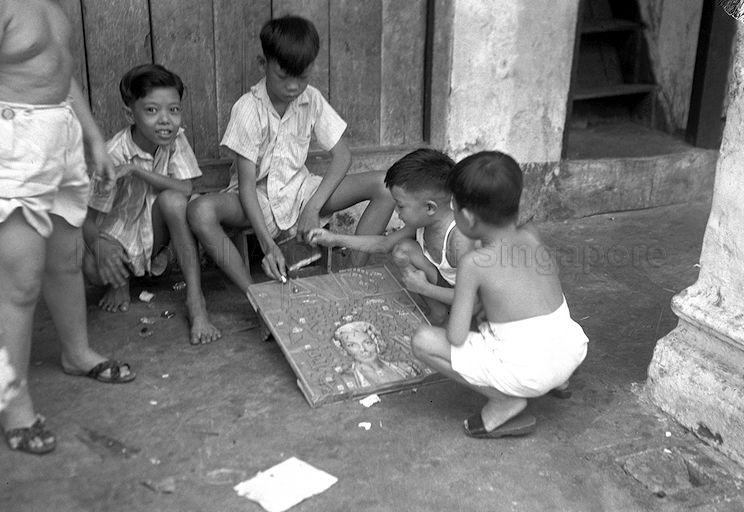 BOYS ENGAGING IN BOARD-GAMING AT STANLEY STREET (1952)
