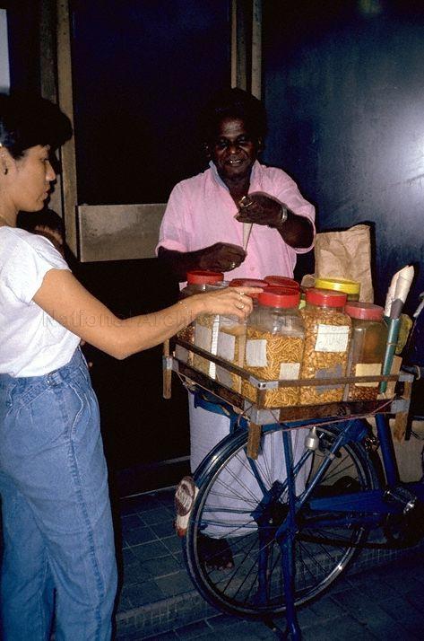 PEANUT VENDOR/ KACHANG PUTIH MAN OUTSIDE THE ODEON CINEMA AT VICTORIA STREET