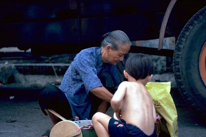 FOOD VENDOR AT CLARKE QUAY TAKING CARE OF A YOUNG CUSTOMER