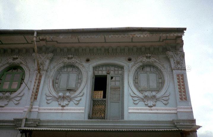 DETAIL IN THE DECORATIVE DESIGNS ON A TWO STOREY SHOPHOUSE, SYED ALWI ROAD